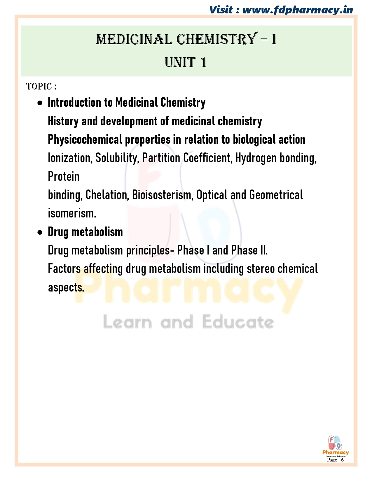 Medicinal Chemistry – I { BP402T }