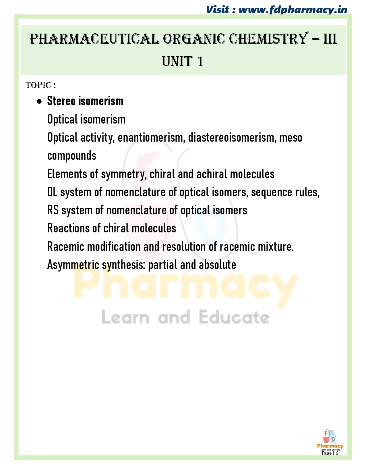 Pharmaceutical Organic Chemistry – III { BP401T }
