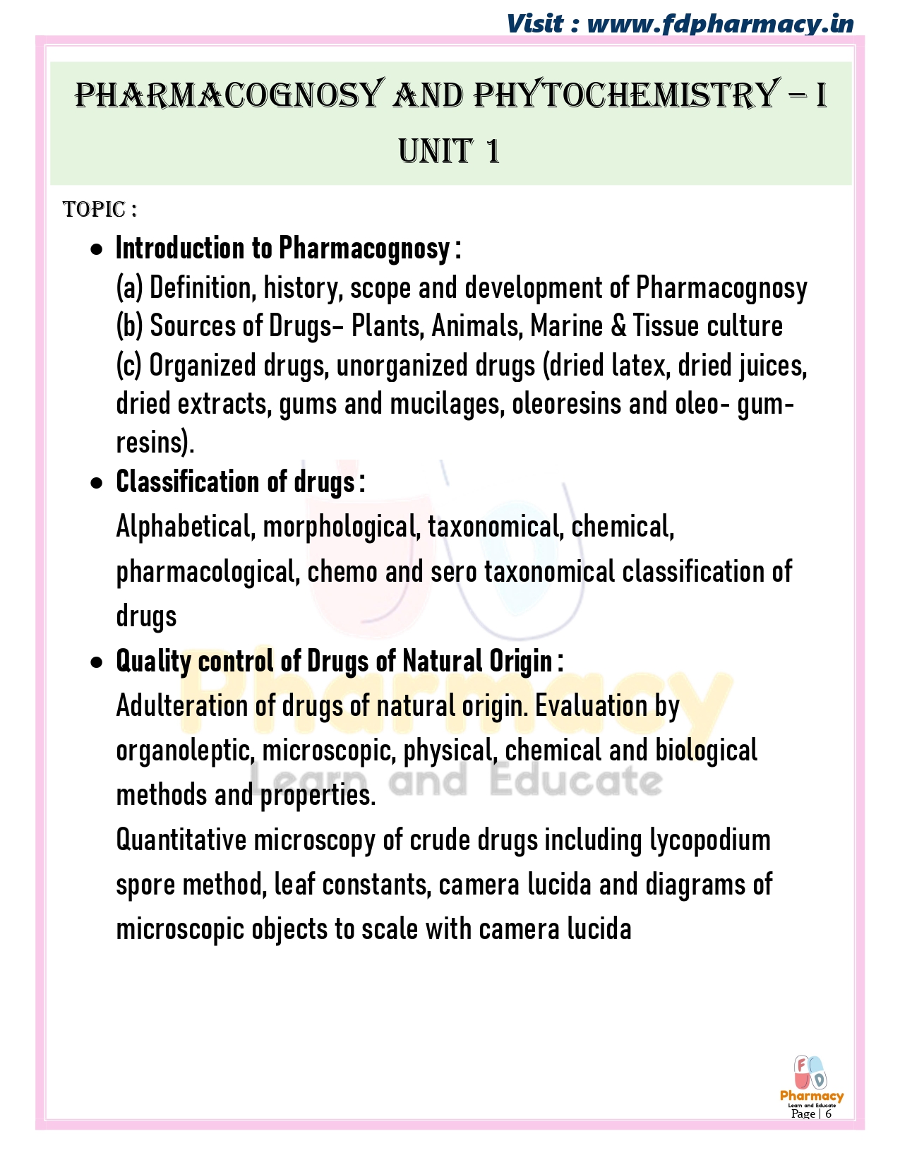 Pharmacognosy and Phytochemistry – I { BP405T }