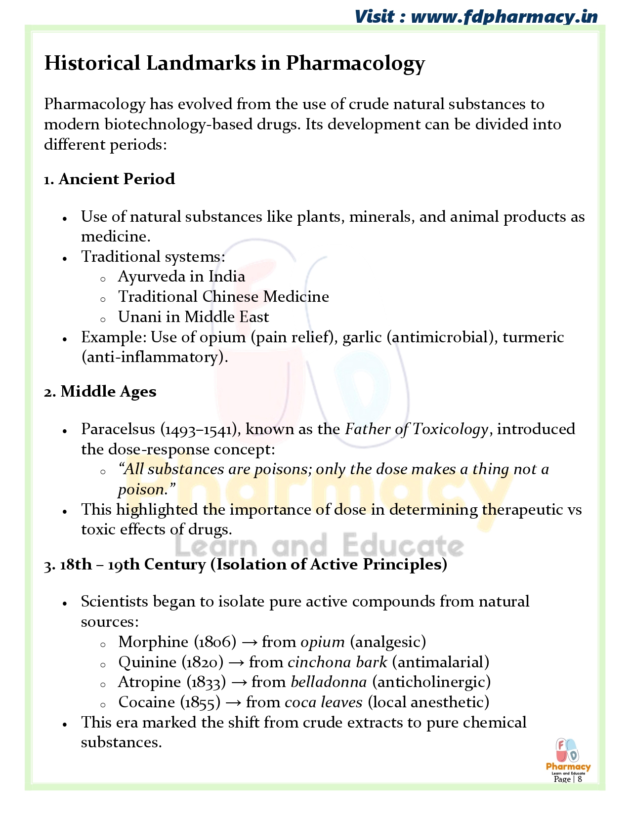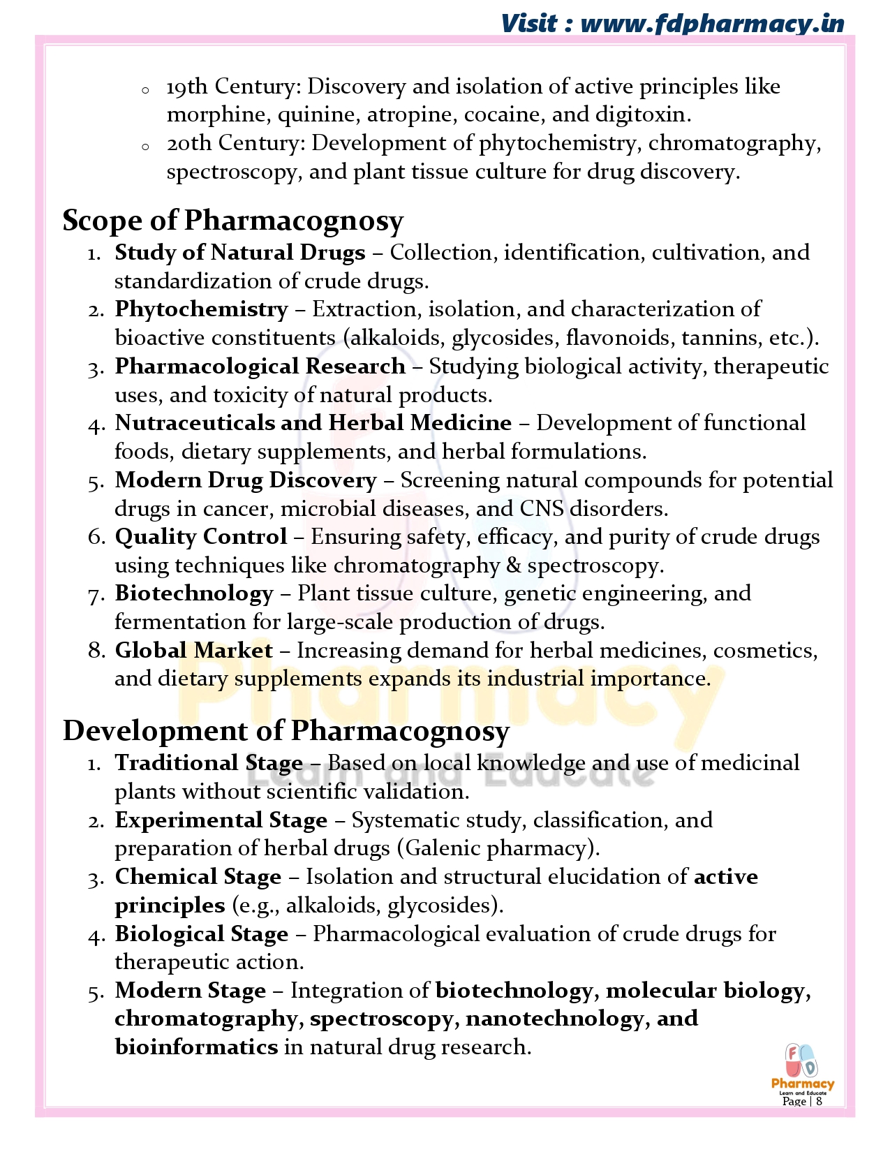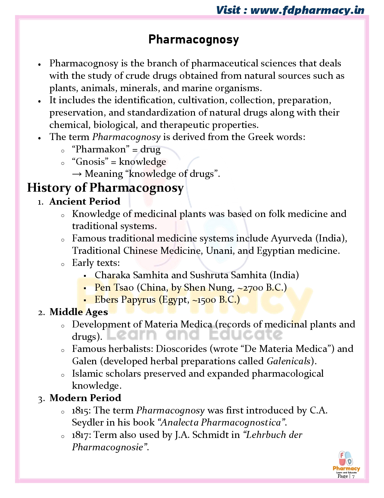 (a) Definition, history, scope and development of Pharmacognosy